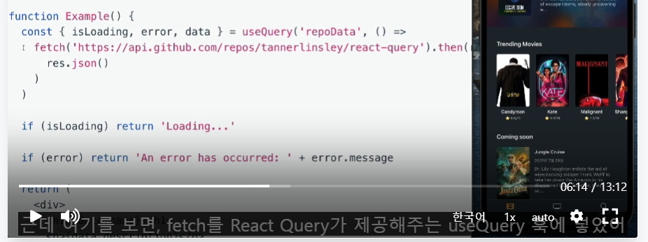 fetcher를 통해 넘어오는 data는 react query의 캐시로 갈거고 key의 이름으로 명명이 된다.