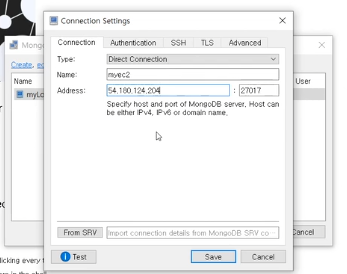 1. Robo3T를 이용해서, "내 컴퓨터에서"→"서버에 있는 mongoDB"에 접속하기
